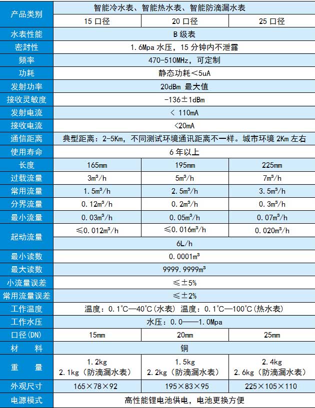 8、水表RF模块唤醒时间灵活,超低功耗,水表电池寿命大于6年。
